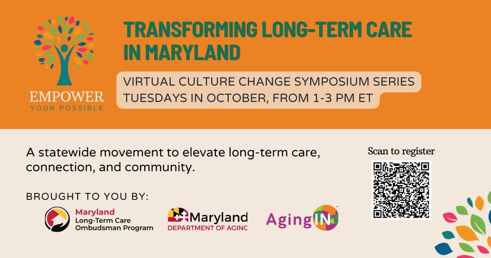 This October, in honor of Residents' Rights Month, the Maryland Long-Term Care Ombudsman program and AgingIN present the Transforming Long-Term Care in Maryland Culture Change Symposium series.
